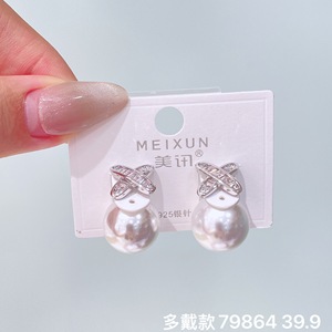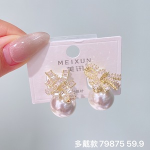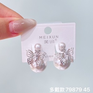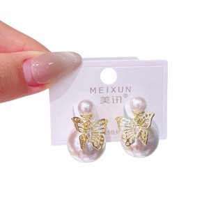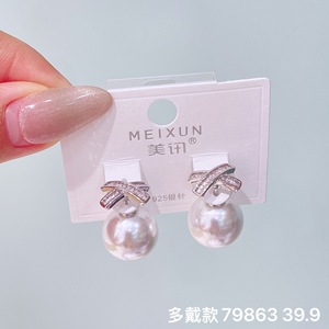 美讯新品轻奢复古时尚大气仿珍珠前后戴耳环个性小香风高级感耳饰