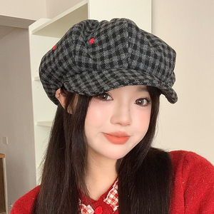 韩系早秋甜美可爱花朵鸭舌帽休闲百搭云朵八角帽时尚显脸小画家帽