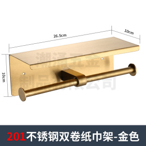 304不锈钢卷纸架 双厕纸架纸巾架酒店洗手间拉丝金跨境卷纸盒两用