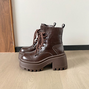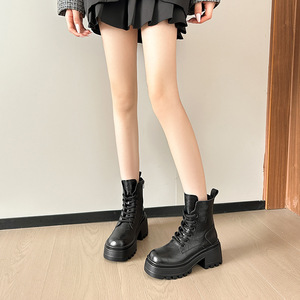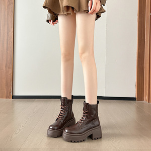 厚底增高马丁靴女2025新款百搭复古松糕跟小个子加绒短靴瘦瘦靴子
