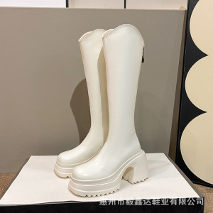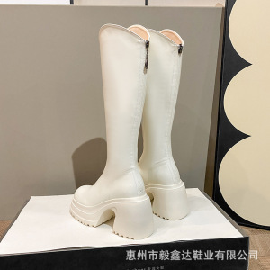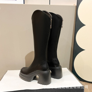 厚底靴子长筒靴女2025新款粗跟小个子高筒v口长靴不过膝高筒靴女