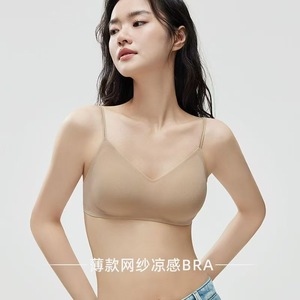 粉底液凉感细肩带内衣女交叉美背小胸聚拢透气防下垂收副乳文胸罩