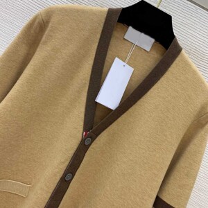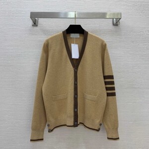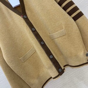 25新款学院风休闲美拉德羊毛混纺撞色织带V领长袖针织开衫外套