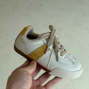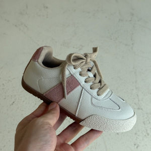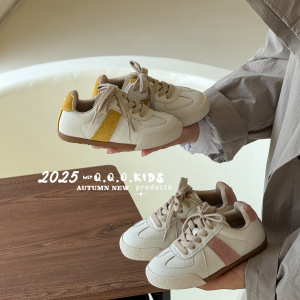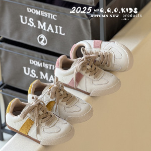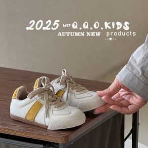 QQO童鞋 2025秋季新款儿童真皮小白鞋男女童复古德训鞋学生休闲鞋