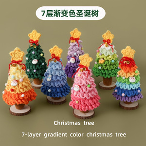 25年创意圣诞节成品雪菲线编织7层渐变色圣诞树桌面手工节日摆件