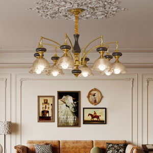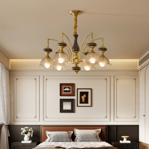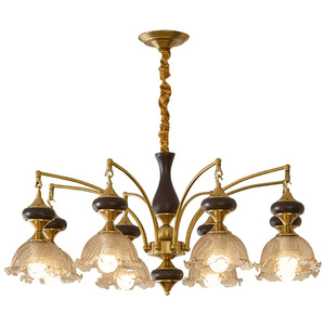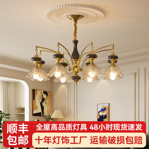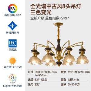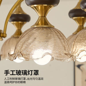 中古南洋风客厅灯胡桃木色餐厅灯新款复古卧室书房冰裂纹玻璃吊灯