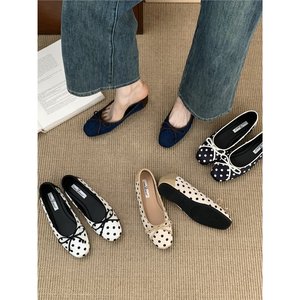 法式小香风波点蝴蝶结芭蕾舞鞋女内平底玛丽珍鞋单鞋