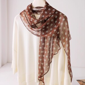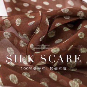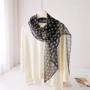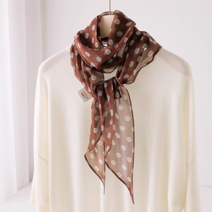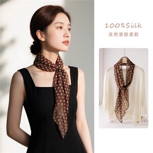 100%桑蚕丝真丝乔其纱水纹波点长条围巾女春夏季时尚薄款细窄丝巾