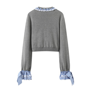 CC-FF25Q31ZM093-格纹拼接钉珠针织衫
