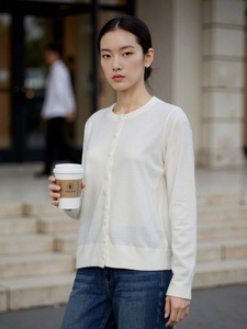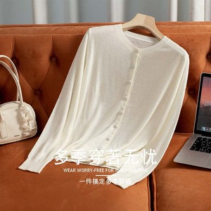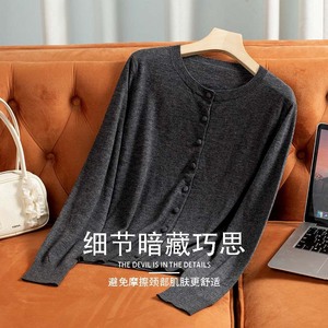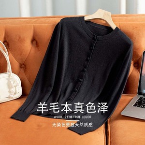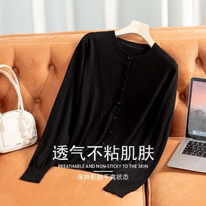 AI 精纺圆领100纯羊毛打底衫上衣女早秋薄款内搭外穿长袖针织衫薄