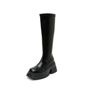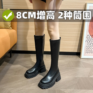 双筒围~大码女鞋长筒靴厚底靴子女弹力瘦瘦靴高筒骑士长靴41-43