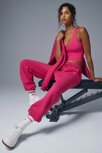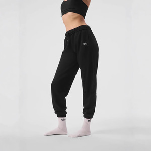 跨境美式风直筒束脚裤宽松显瘦阔腿卫裤女抽绳松紧腰白色运动裤潮