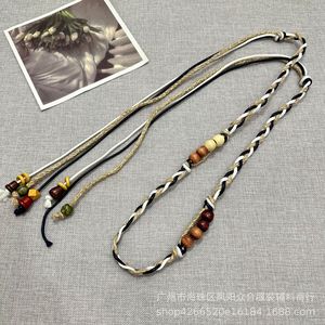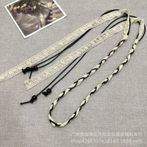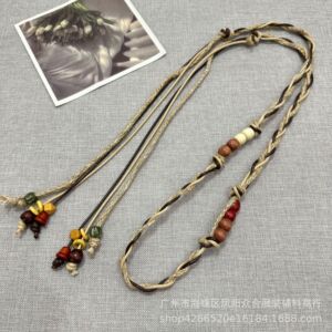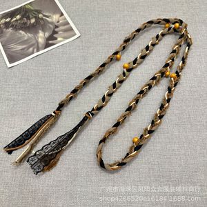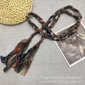 波西米亚风手工编织格子布艺麻花腰绳休闲文艺复古配饰设计感腰带
