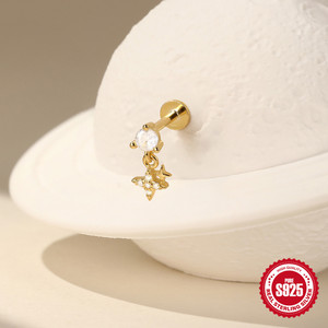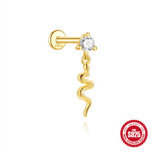 S925纯银趣味小蛇镶钻星星平头螺纹穿刺耳骨钉速卖通热销经典耳饰