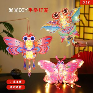 中秋节灯笼蝴蝶灯笼可提举diy材料古风手工宫灯儿童手提发光花灯