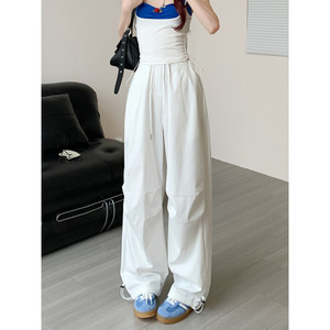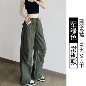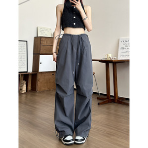 2025小红书爆款深灰工装裤女春秋夏季薄款新款美式抽绳直筒复古