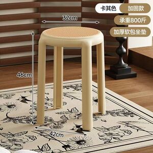 中古仿藤编塑料凳子家用结实耐用可叠放圆凳简约客厅备用餐凳