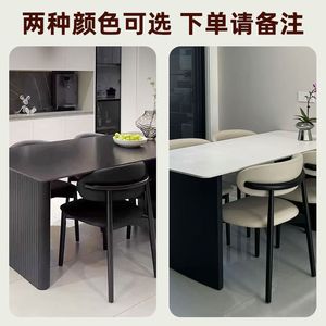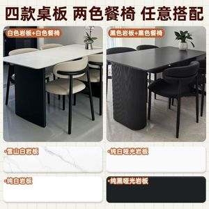 现代简约黑色岩板餐桌餐桌椅组合家用小户型长方形意式组合饭桌椅