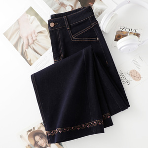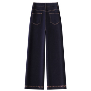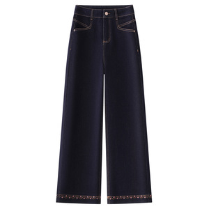 丹宁蓝窄版牛仔阔腿裤女2025秋季新款高腰宽松百搭显瘦直筒九分裤