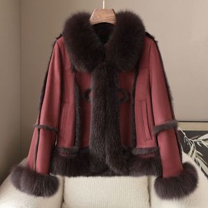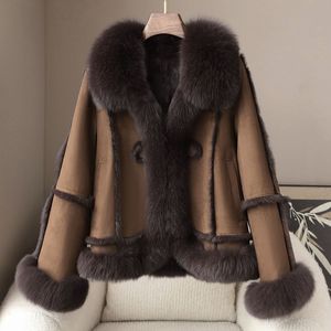 少量服饰2025秋冬新品美拉德风兔皮毛一体狐狸毛领女式真皮草外套