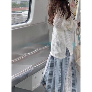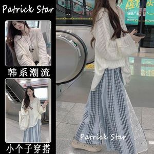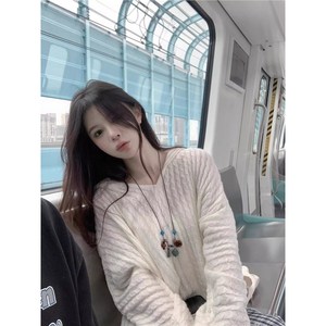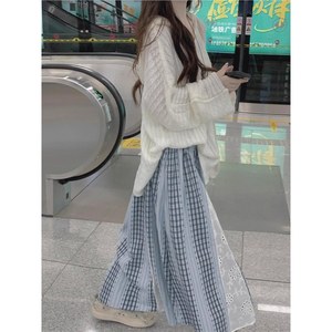 韩系学院风宽松慵懒半身裙设计感套头毛衣奶呼呼拼接针织衫潮流