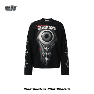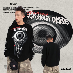GLFS美式街头潮牌眼睛十字架长袖男式卫衣 炸街校园长t打底衫跨境