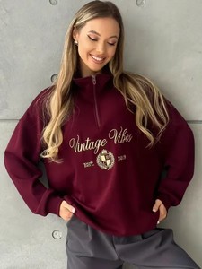 秋冬季时尚气质小众慵懒风字母印花百搭通勤加厚卫衣半拉链上衣潮