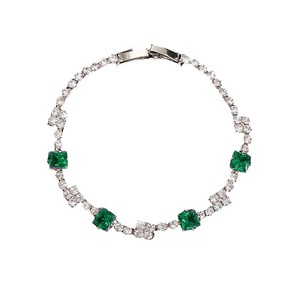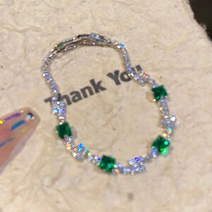 轻奢风超闪绿色方形锆石手链2025年新款小众设计高级感百搭手饰品
