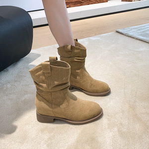 小个子堆堆靴女春秋2025新款内增高西部牛仔靴单靴时尚百搭马丁靴