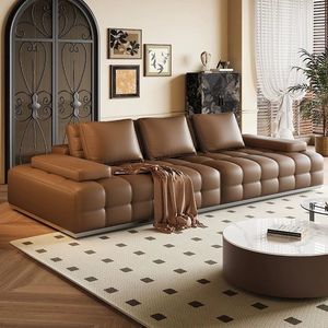 劳伦斯沙发简约现代头层牛皮意式别墅客厅小户型直排皮艺沙发