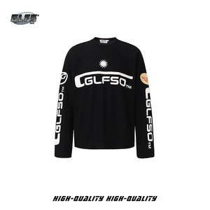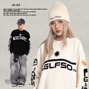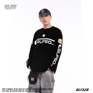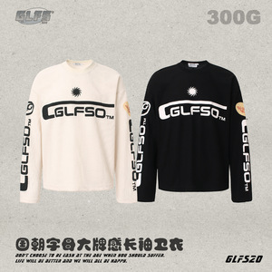 GLFS 美式复古华夫格街头运动风长袖卫衣男秋季情侣宽松痞帅上衣T