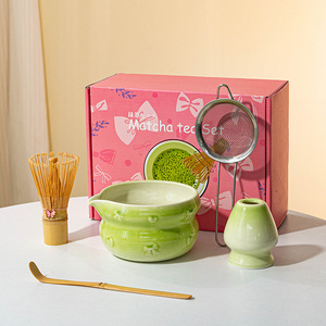 跨境高颜值专供抹茶茶具窑变釉百本立茶筅日式抹茶套装抹茶碗带嘴