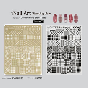 美甲印花板法式模板转印钢板星星心形格纹精细花纹金色大钢板转印