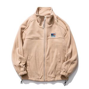 日系羊羔毛外套抓绒卫衣男款秋冬情侣立领摇粒绒学生外穿休闲夹克