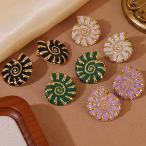 跨境新品不锈钢海螺耳环女欧美时尚复古滴油耳环镀金钛钢耳饰饰品