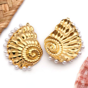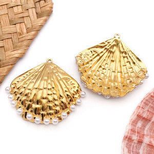 1个36x49x5mm孔径1.5mm真空电镀金色不锈钢穿白色ABS珍珠海螺-9.6g-T2462