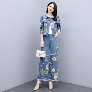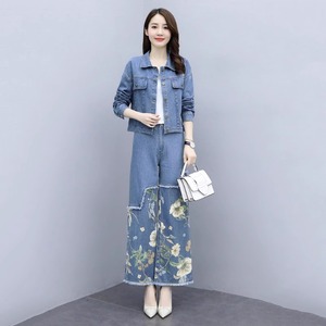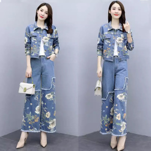 春秋装休闲职业时尚套装2025年新款女装洋气显瘦牛仔阔腿裤两件套