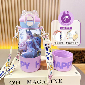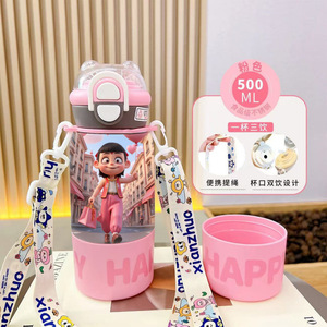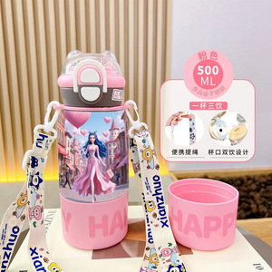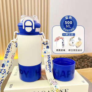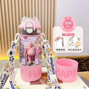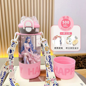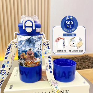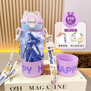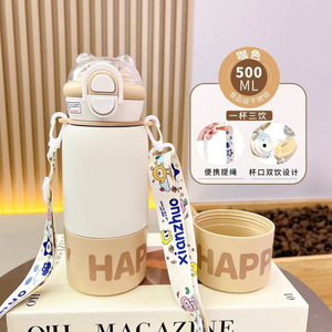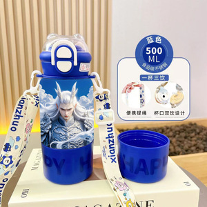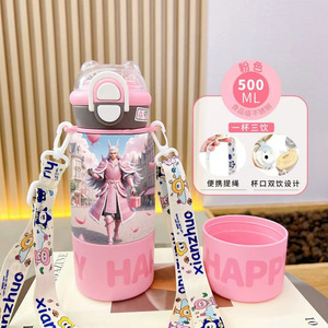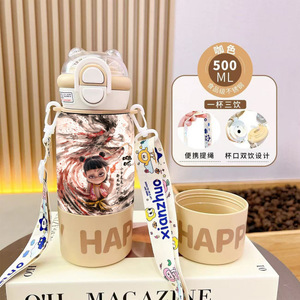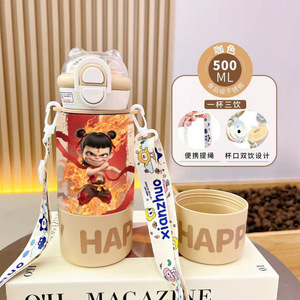 哪吒316不锈钢保温杯男女生高颜值大容量便携挂绳水杯吸管儿童水