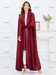 中东跨境大码女装阿巴亚礼服三宅一生褶皱abaya开衫蝙蝠袖外套长