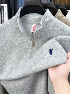 保罗卫衣男潮流春秋新款中年男士立领帅气刺绣宽松外穿上衣打底衫
