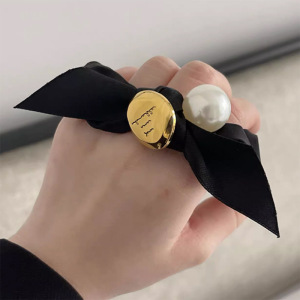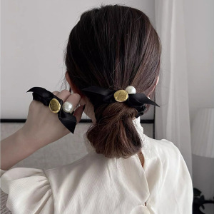 法式珍珠蝴蝶结发圈女后脑勺马尾发圈高弹力扎发皮筋耐用头绳发饰
