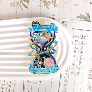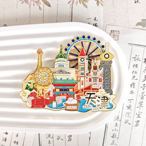 国潮天津之眼摩天轮金属冰箱贴世纪钟文创中国风磁吸贴旅游纪念品