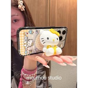 冰激凌饮品凯蒂黄格底部+黄衣坐姿硅胶凯蒂磁吸支架