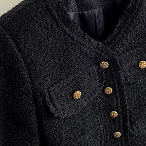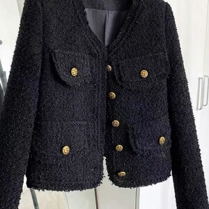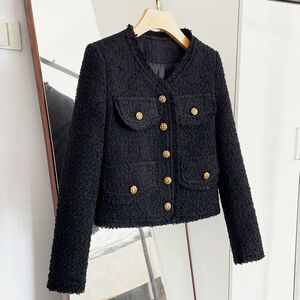 粗花呢长袖春秋短款新款气质黑色小香风外套薄款欧美上衣名媛2025