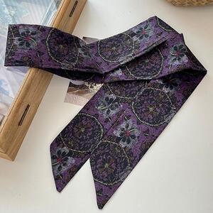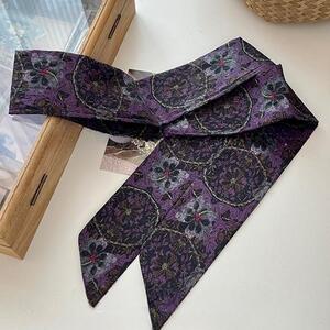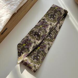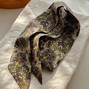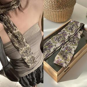 韩国博主文艺复古高级感古着油画风长款丝巾系脖领巾领带配饰围巾