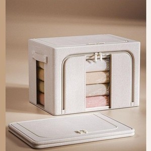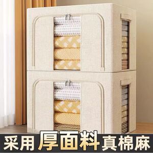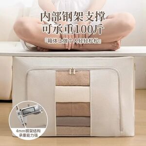 新款棉麻66升衣服收纳箱布艺家用卧室衣柜被子整理盒可折叠储物箱
