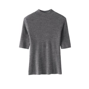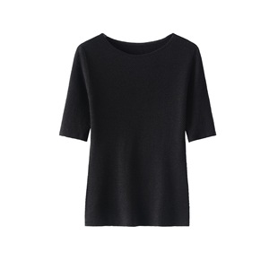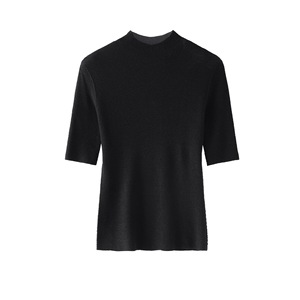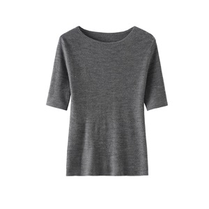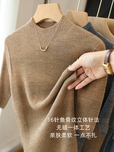 48支超细羊毛衫 鱼骨纹一字领显瘦无缝半高领中袖针织衫女G080508