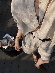 老钱风独特漂亮职业穿搭衬衫亚麻套装裤女ootd穿搭一整套爆款推荐