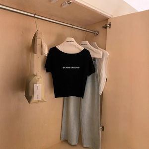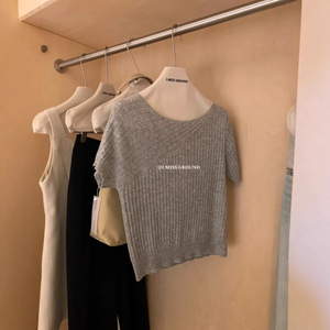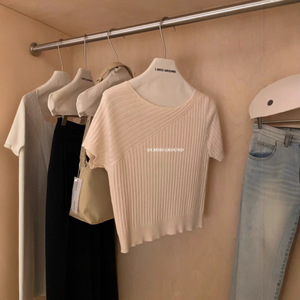 高货含30%羊毛十三行miss2025秋款不规则一字肩洋气显瘦套头短袖