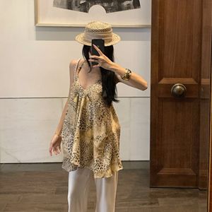 设计感不规则豹纹套装吊带露背女装夏季挂脖宽松无袖外穿辣妹上衣